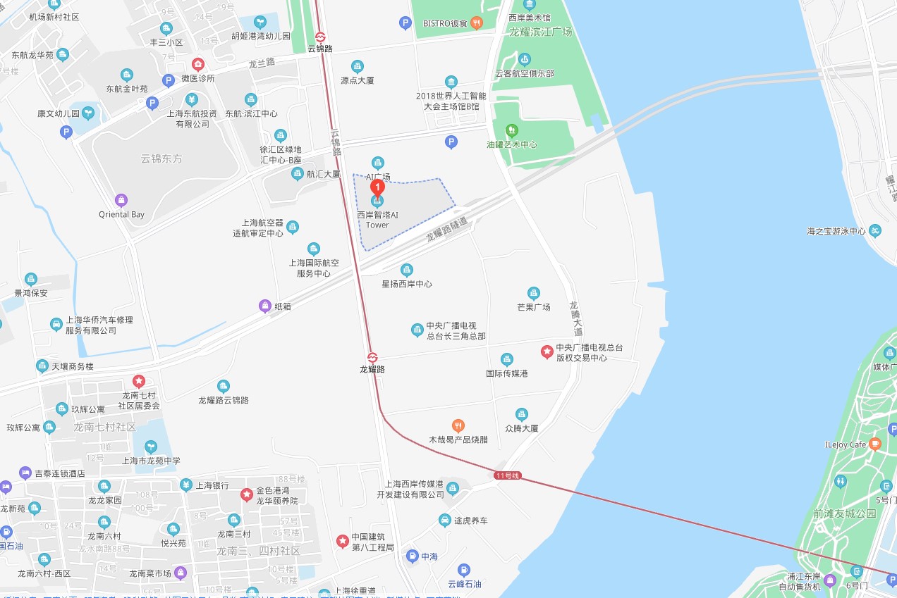 Shanghai AI Tower of the West Bund, the two 200-meter and 235-meter landmark buildings, is located at 701 Yunjin Road in Xuhui District, covering about 510,000 square meters. The AI Tower features 5G network coverage and an intelligent building management system. It will serve international exchanges, application exhibitions as well as research and transformation of AI technologies. Around the building, Xuhui District will build an “Intelligent Valley” covering 1.2 million square meters along the Huangpu River for AI-related industries.