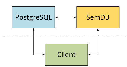 就目前的技术趋势而言,这两种类型的工作负载很可能需要由不同的内部引擎来处理,本课题目前主要考虑事务性工作负载的场景。系统的实现依托于开源数据库PostgreSQL,并附带有图形界面的客户端,整个系统框图如下图所示: